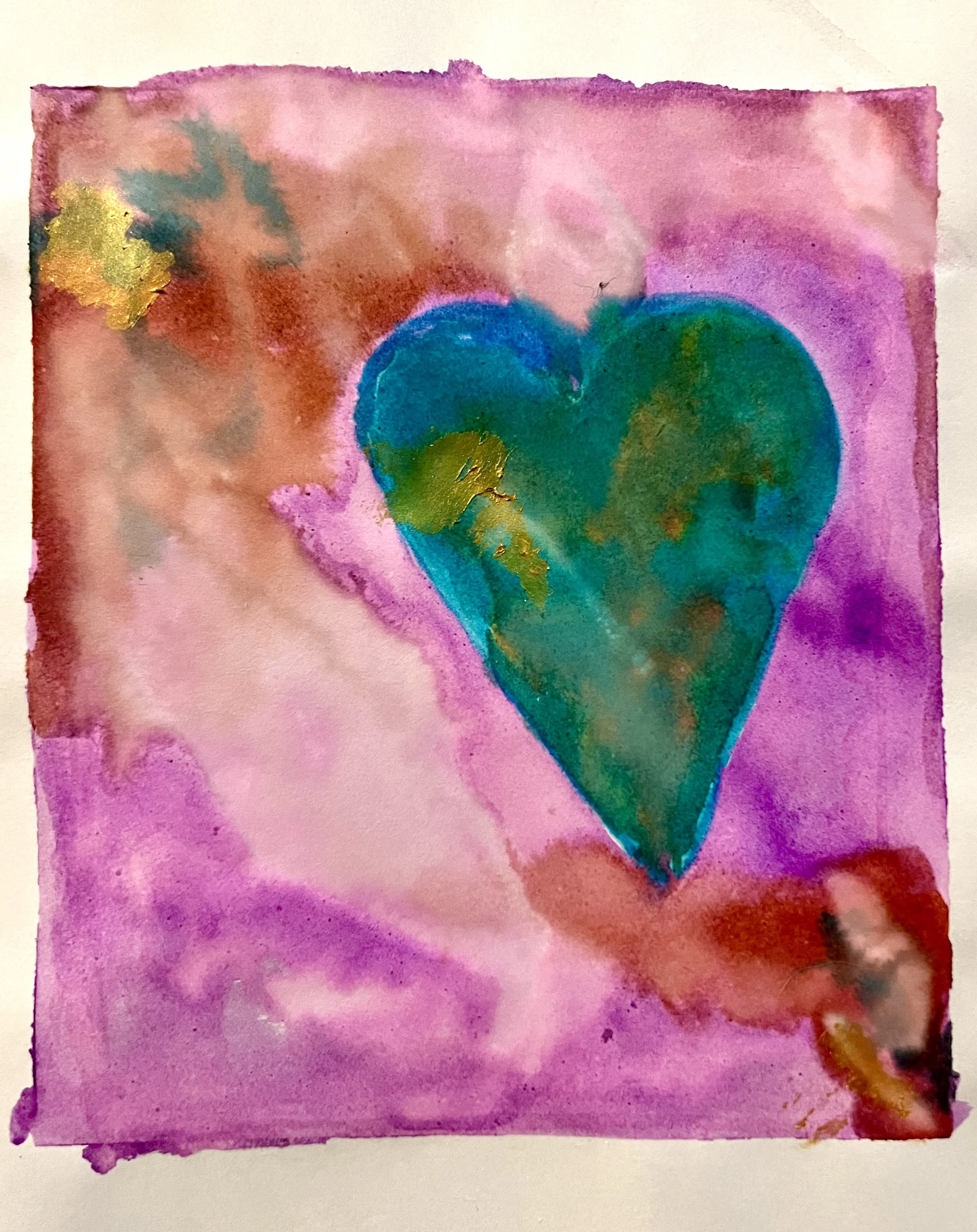 While spending time with my grandchildren on this love-filled holiday, we decided to do some painting. Naturally, I chose to paint a heart, the synonymous symbol of love. Although I only scribbled out a few words on a card for Liam on the topic of love, you are welcome to read my Travel Love Story from last year. Enjoy! — M